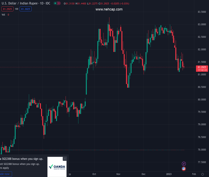 USDINR currently trading at 81.3375 at the time of writing. Pair opened at 81.4251 and is trading with a change of -0.11% % .