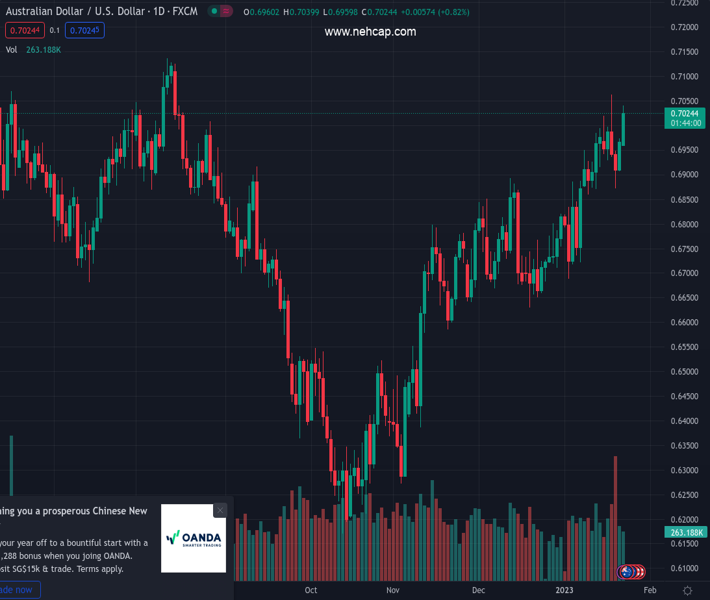 AUDUSD currently trading at 0.7021 at the time of writing. Pair opened at 0.697 and is trading with a change of 0.73 % .