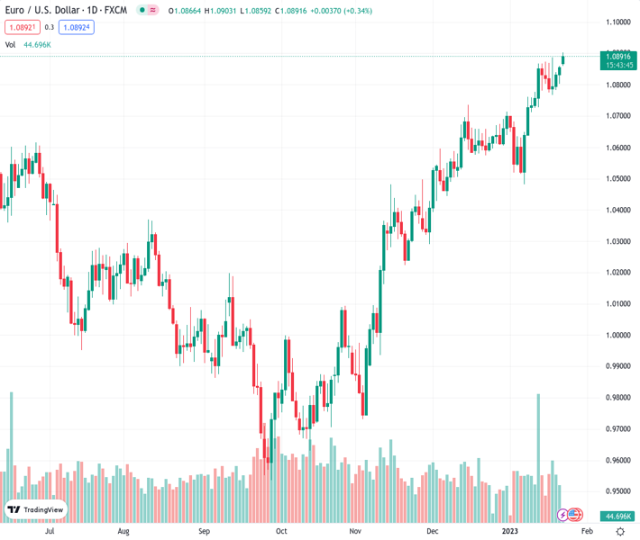 EURUSD currently trading at 1.0892 at the time of writing. Pair opened at 1.0856 and is trading with a change of 0.33% % .