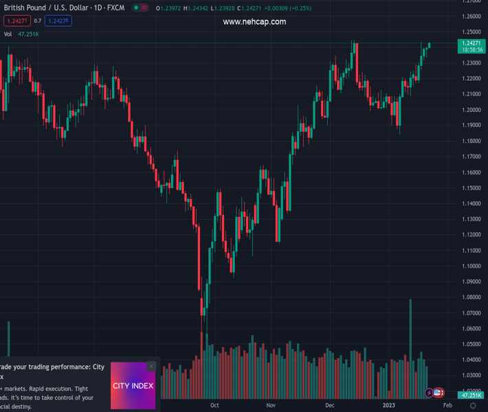 GBPUSD currently trading at 1.2427 at the time of writing. Pair opened at 1.2395 and is trading with a change of 0.26% % .