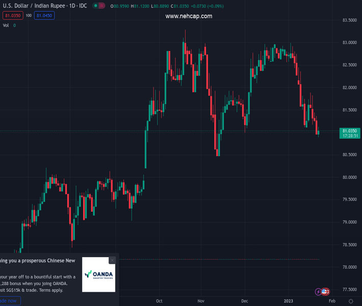 USDINR currently trading at 80.978 at the time of writing. Pair opened at 80.976 and is trading with a change of 0.00% % .