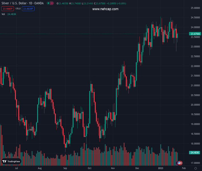 XAGUSD currently trading at 23.67 at the time of writing. Pair opened at 23.45 and is trading with a change of 0.94 % .