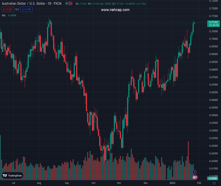 AUDUSD currently trading at 0.7105 at the time of writing. Pair opened at 0.7042 and is trading with a change of 0.89% % .