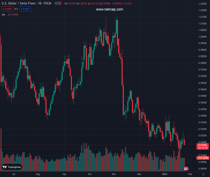 USDCHF currently trading at 0.9182 at the time of writing. Pair opened at 0.9228 and is trading with a change of -0.5 % .