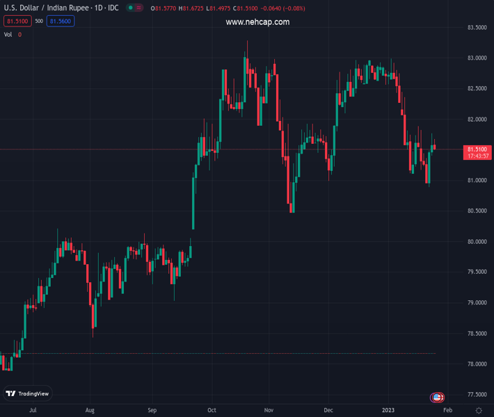 USDINR currently trading at 81.5285 at the time of writing. Pair opened at 81.6123 and is trading with a change of -0.10% % .