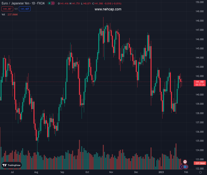 EURJPY currently trading at 141.41 at the time of writing. Pair opened at 141.45 and is trading with a change of -0.03 % .