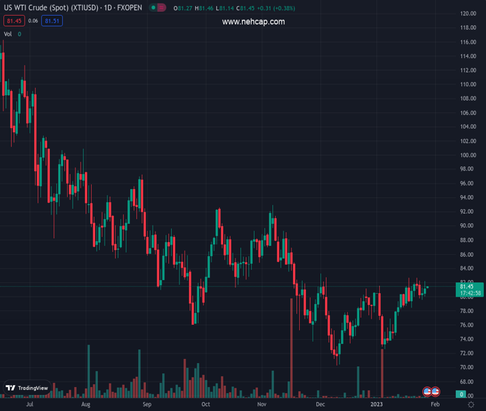 On the oil front, oil price is deomnstrating a lackluster performance as investors might take positions at full capacity after geeting outcome of the OPEC+ panel meeting. Reuters recently reported that the panel is unlikely to alter production levels, given that crude prices recovered sharply in early 2023, and that demand is forecast to surge as the Chinese economy recovers.