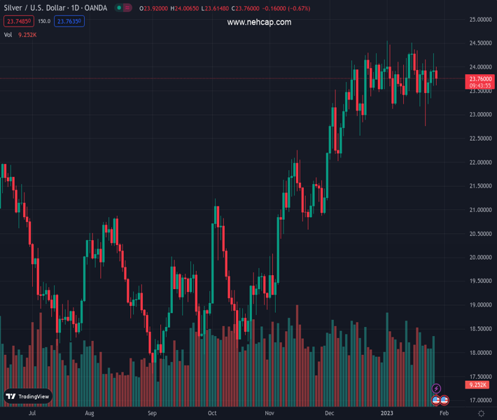 XAGUSD currently trading at 23.74 at the time of writing. Pair opened at 23.92 and is trading with a change of -0.75 % .