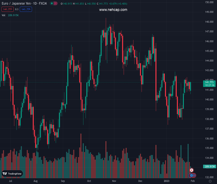 EURJPY currently trading at 141.85 at the time of writing. Pair opened at 141.12 and is trading with a change of 0.52 % .