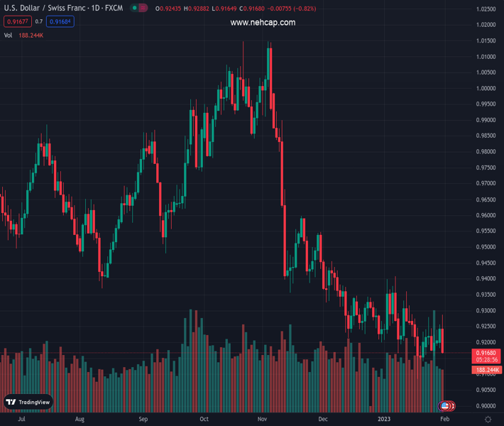 USDCHF currently trading at 0.918 at the time of writing. Pair opened at 0.9253 and is trading with a change of -0.79 % .