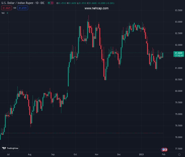 USDINR currently trading at 81.6426 at the time of writing. Pair opened at 81.5799 and is trading with a change of 0.08 % .