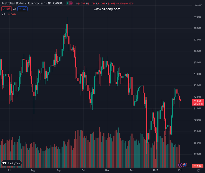 AUDJPY currently trading at 91.64 at the time of writing. Pair opened at 91.86 and is trading with a change of -0.24 % .