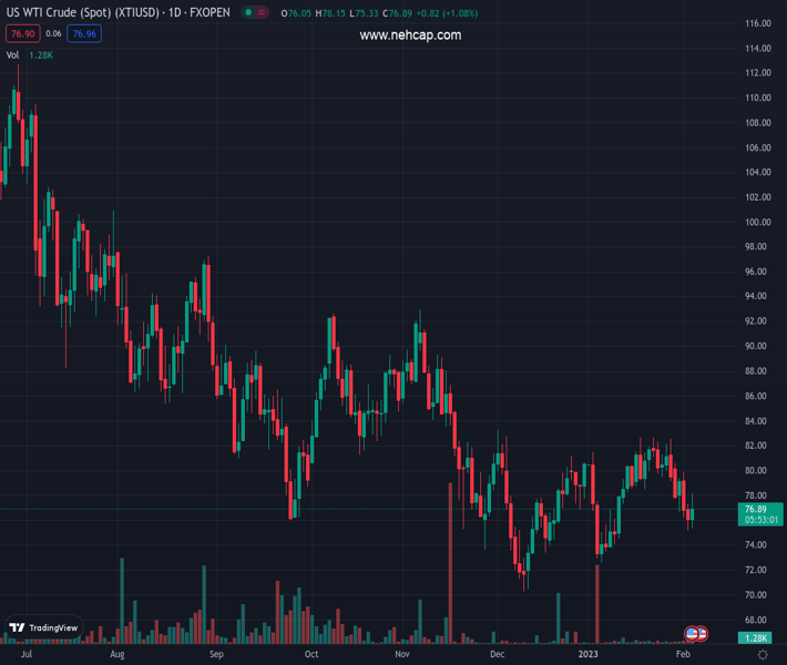 XTIUSD currently trading at 77.34 at the time of writing. Pair opened at 76.0 and is trading with a change of 1.76 % .