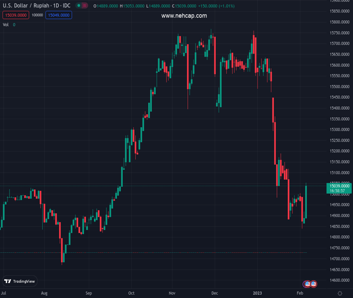 USDIDR currently trading at 15044.15 at the time of writing. Pair opened at 15094.8 and is trading with a change of -0.34% % .