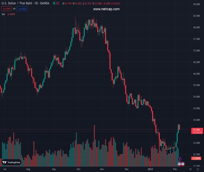 “Last Monday (30 Jan, spot at 32.78), we highlighted that ‘the combination of waning downward momentum and oversold conditions suggests USD/THB has moved into a consolidation phase’ and we expected USD/THB to ‘trade sideways between 32.60 and 33.05.’ However, USD/THB surged to a high of 33.51 on Friday.”
