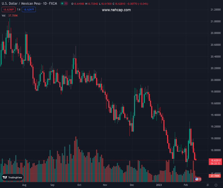 USDMXN currently trading at 18.6457 at the time of writing. Pair opened at 18.6576 and is trading with a change of -0.06 % .