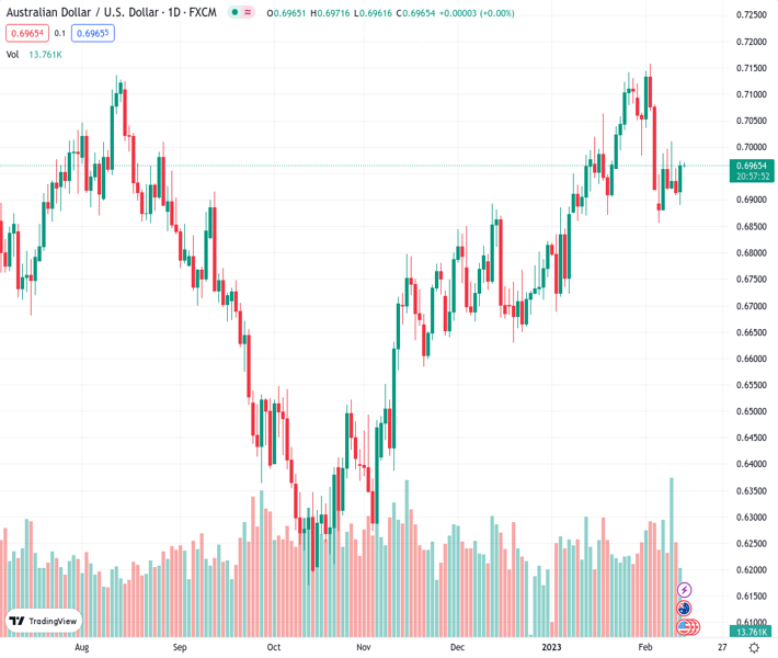 AUDUSD currently trading at 0.6964 at the time of writing. Pair opened at 0.6966 and is trading with a change of -0.03% % .