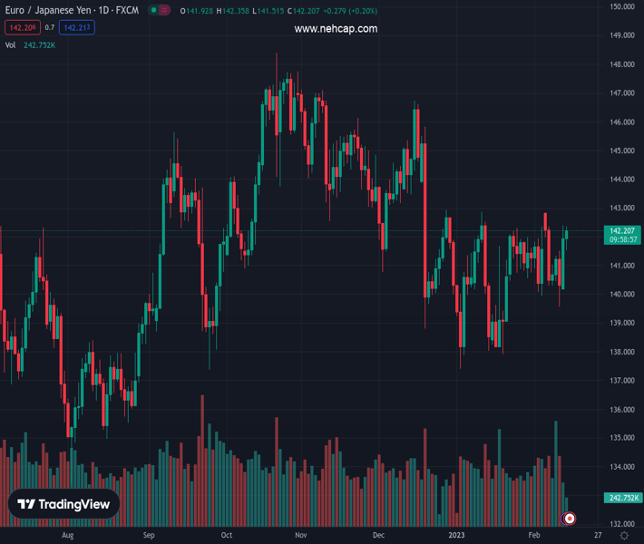 EURJPY currently trading at 142.23 at the time of writing. Pair opened at 141.85 and is trading with a change of 0.27 % .