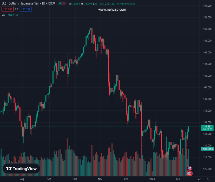 USDJPY currently trading at 133.06 at the time of writing. Pair opened at 132.29 and is trading with a change of 0.58 % .