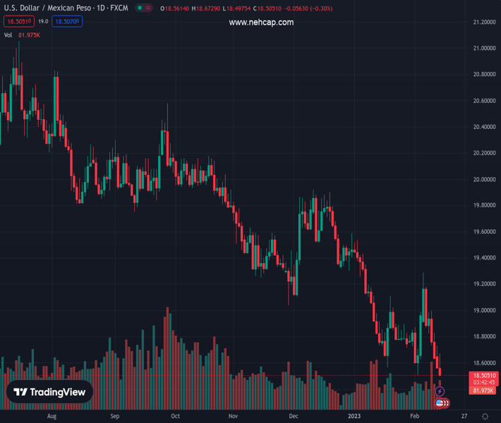 USDMXN currently trading at 18.5285 at the time of writing. Pair opened at 18.5842 and is trading with a change of -0.3 % .