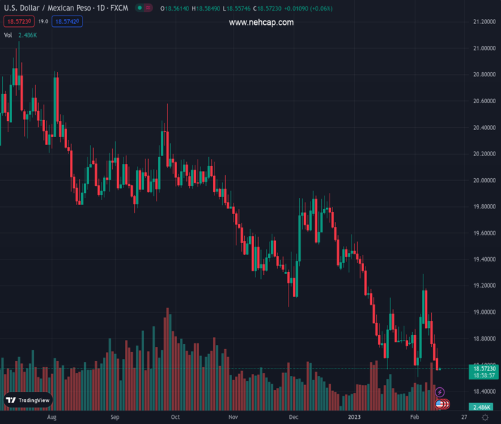 USDMXN currently trading at 18.5724 at the time of writing. Pair opened at 18.5842 and is trading with a change of -0.06% % .