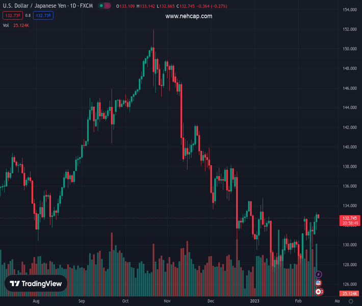 USDJPY currently trading at 132.73 at the time of writing. Pair opened at 133.04 and is trading with a change of -0.23% % .
