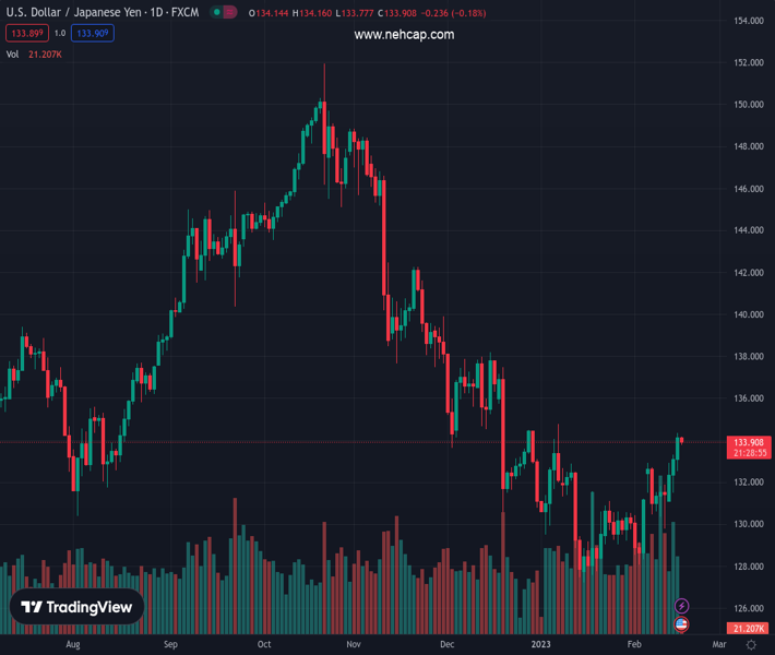 USDJPY currently trading at 133.8 at the time of writing. Pair opened at 134.11 and is trading with a change of -0.23% % .