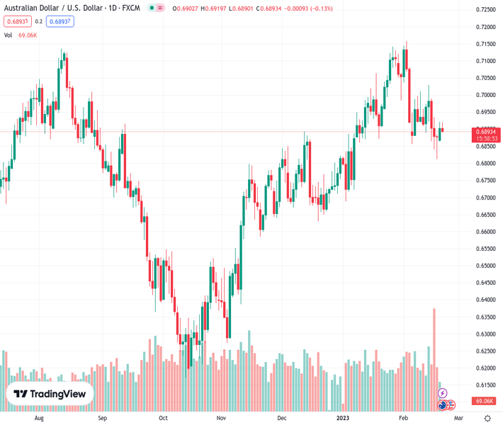 AUDUSD currently trading at 0.6893 at the time of writing. Pair opened at 0.6913 and is trading with a change of -0.29 % .