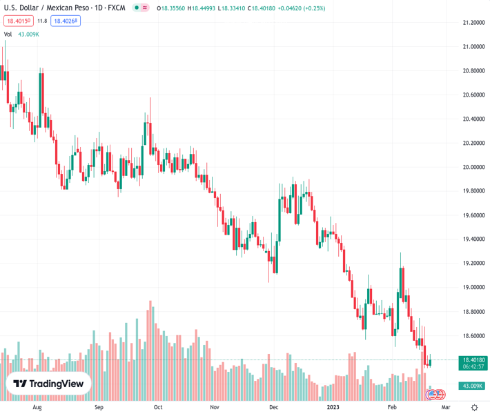 The Mexican Peso is the second-best performing EM currency with a gain of nearly 6% YTD. Analysts at Société Générale ponder the possibility of a move below 18.00 in the USD/MXN pair.