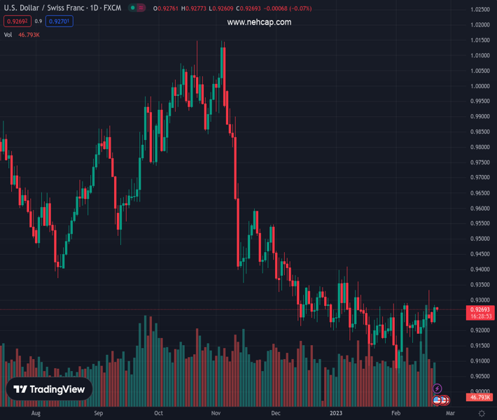 USDCHF currently trading at 0.9264 at the time of writing. Pair opened at 0.9276 and is trading with a change of -0.13% % .