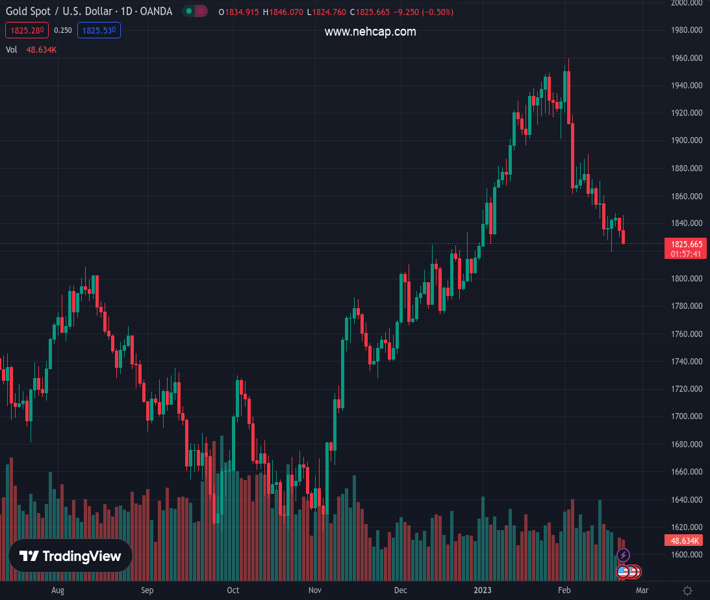 The minutes were released whereby investors have been searching for further insights into the near-term path for policy and any comments regarding the possibility of the Federal Reserve going back to 50 bps hikes. The minutes showed that a few participants had favoured raising rates by 50 basis points which has put a bid in the US Dollar but left the US Treasury Yield relatively stable. This has left the Gold price somewhat pressured around the low of the day near $1,825.54 after the yellow metal fell from a high of 41,846.05 earlier in the day.