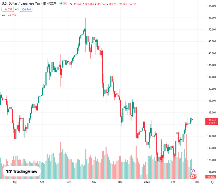 USDJPY currently trading at 134.79 at the time of writing. Pair opened at 134.94 and is trading with a change of -0.11% % .