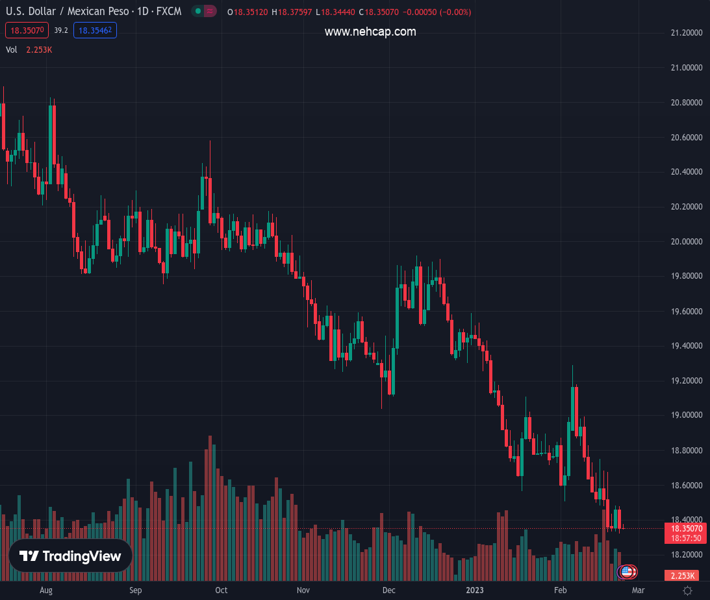 USDMXN currently trading at 18.3634 at the time of writing. Pair opened at 18.3745 and is trading with a change of -0.06% % .