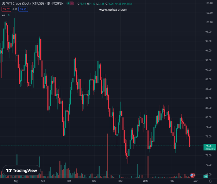 XTIUSD currently trading at 74.13 at the time of writing. Pair opened at 73.94 and is trading with a change of 0.26 % .