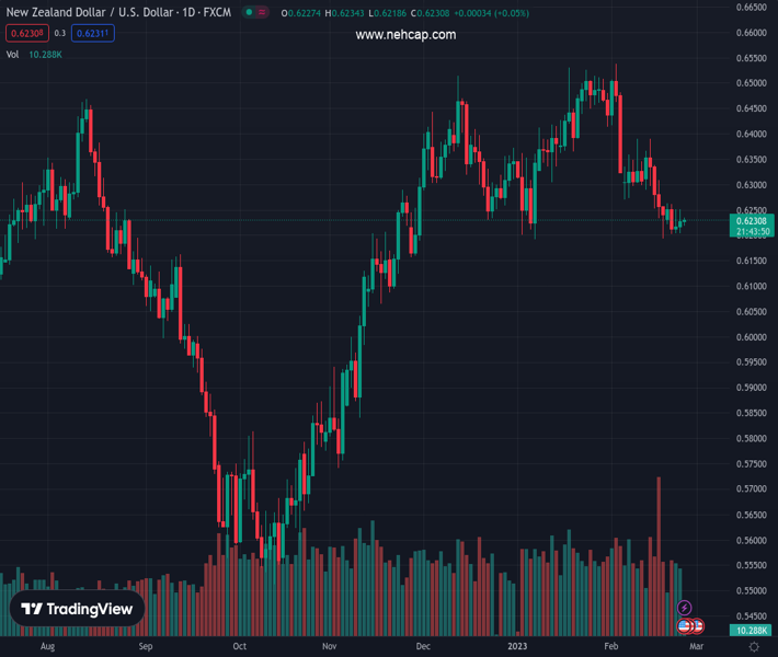 NZDUSD currently trading at 0.623 at the time of writing. Pair opened at 0.6233 and is trading with a change of -0.05% % .
