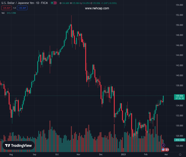 USDJPY currently trading at 135.9 at the time of writing. Pair opened at 134.64 and is trading with a change of 0.94 % .