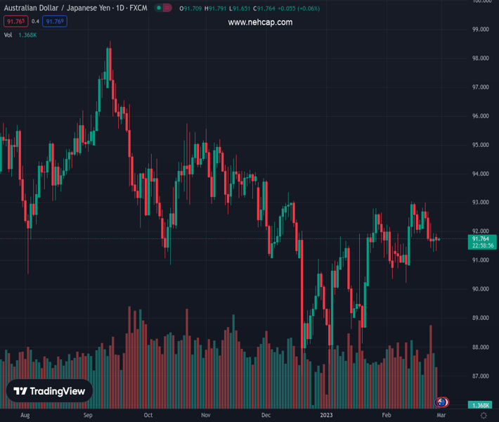 AUDJPY currently trading at 91.77 at the time of writing. Pair opened at 91.76 and is trading with a change of 0.01 % .