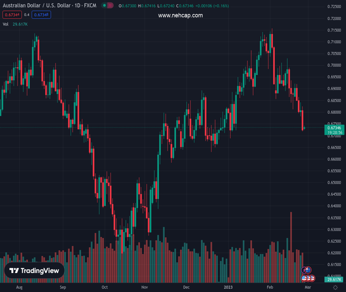 AUDUSD currently trading at 0.6734 at the time of writing. Pair opened at 0.6727 and is trading with a change of 0.10% % .