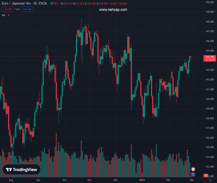 EURJPY currently trading at 144.52 at the time of writing. Pair opened at 143.88 and is trading with a change of 0.44 % .
