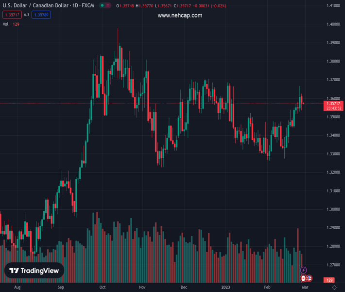 USDCAD currently trading at 1.3575 at the time of writing. Pair opened at 1.3606 and is trading with a change of -0.23 % .