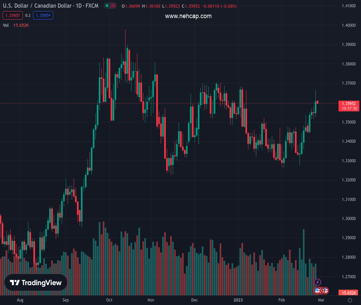 USDCAD currently trading at 1.36 at the time of writing. Pair opened at 1.3606 and is trading with a change of -0.04% % .