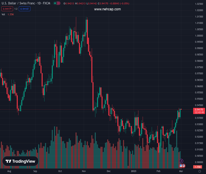 USDCHF currently trading at 0.9418 at the time of writing. Pair opened at 0.9359 and is trading with a change of 0.63 % .