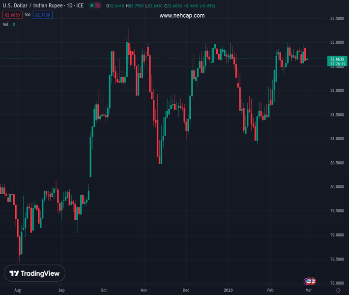 USDINR currently trading at 82.7165 at the time of writing. Pair opened at 82.6541 and is trading with a change of 0.08 % .