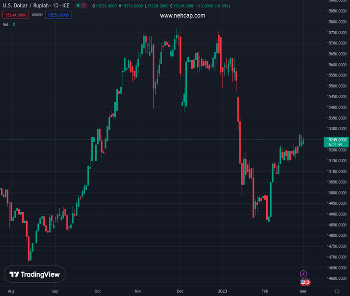 USDIDR currently trading at 15255 at the time of writing. Pair opened at 15239.95 and is trading with a change of 0.10% % .