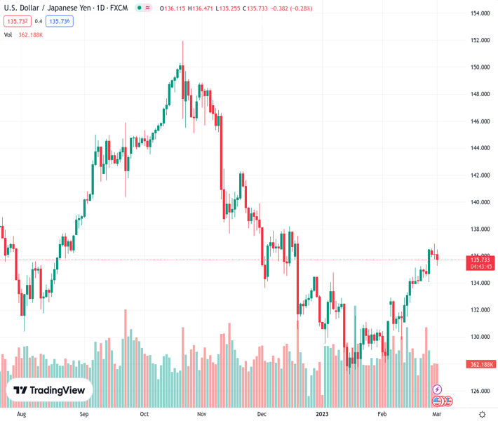 The USD/JPY remains pressured, though capped by recent US economic data, as the US ISM Manufacturing PMI for February fell short of estimates. However, some subcomponents show that again prices are rising. The USD/JPY is exchanging hands at 136.08.