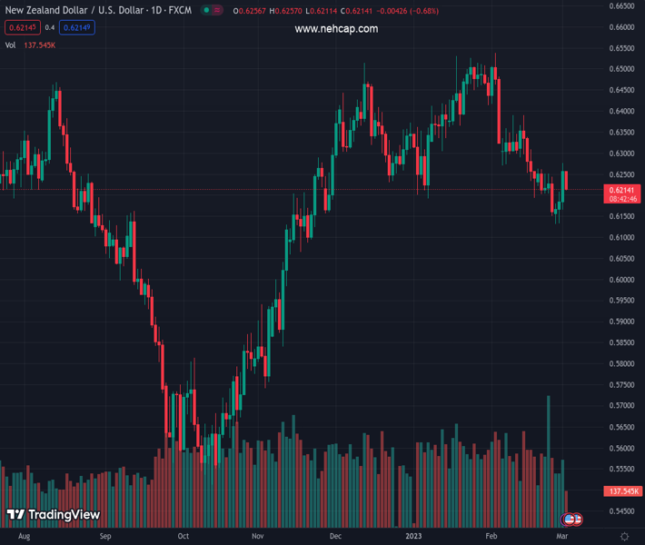 NZDUSD currently trading at 0.6217 at the time of writing. Pair opened at 0.6253 and is trading with a change of -0.58 % .