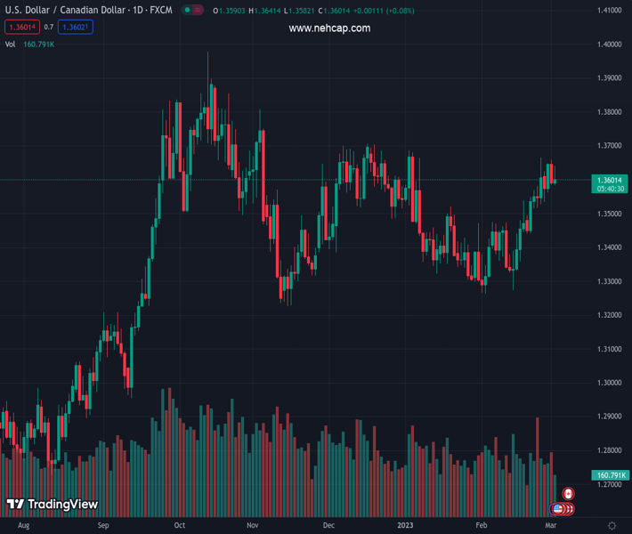 #USDCAD @ 1.36041 Upbeat labor market data boosted the US Dollar.