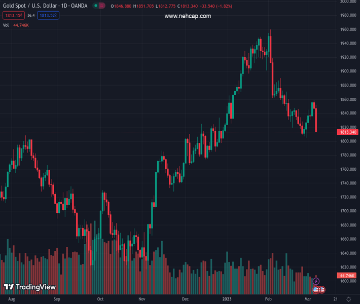 XAUUSD currently trading at 1813.48 at the time of writing. Pair opened at 1846.69 and is trading with a change of -1.8 % .