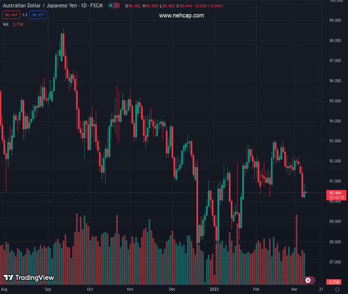 AUDJPY currently trading at 90.46 at the time of writing. Pair opened at 90.4 and is trading with a change of 0.07% % .