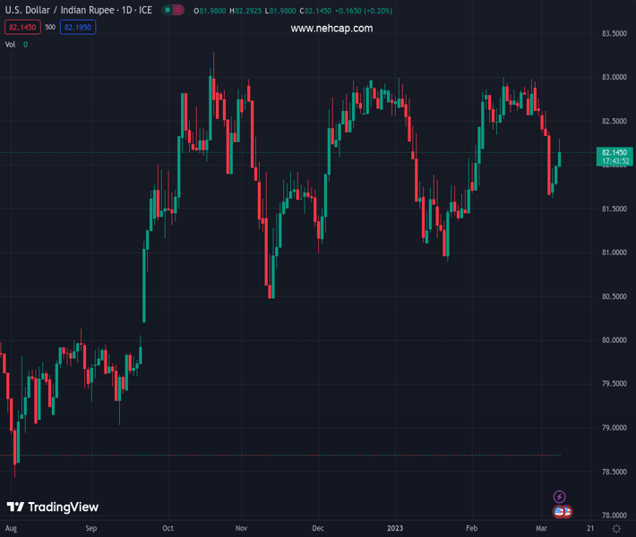 USDINR currently trading at 82.1796 at the time of writing. Pair opened at 82.0733 and is trading with a change of 0.13 % .